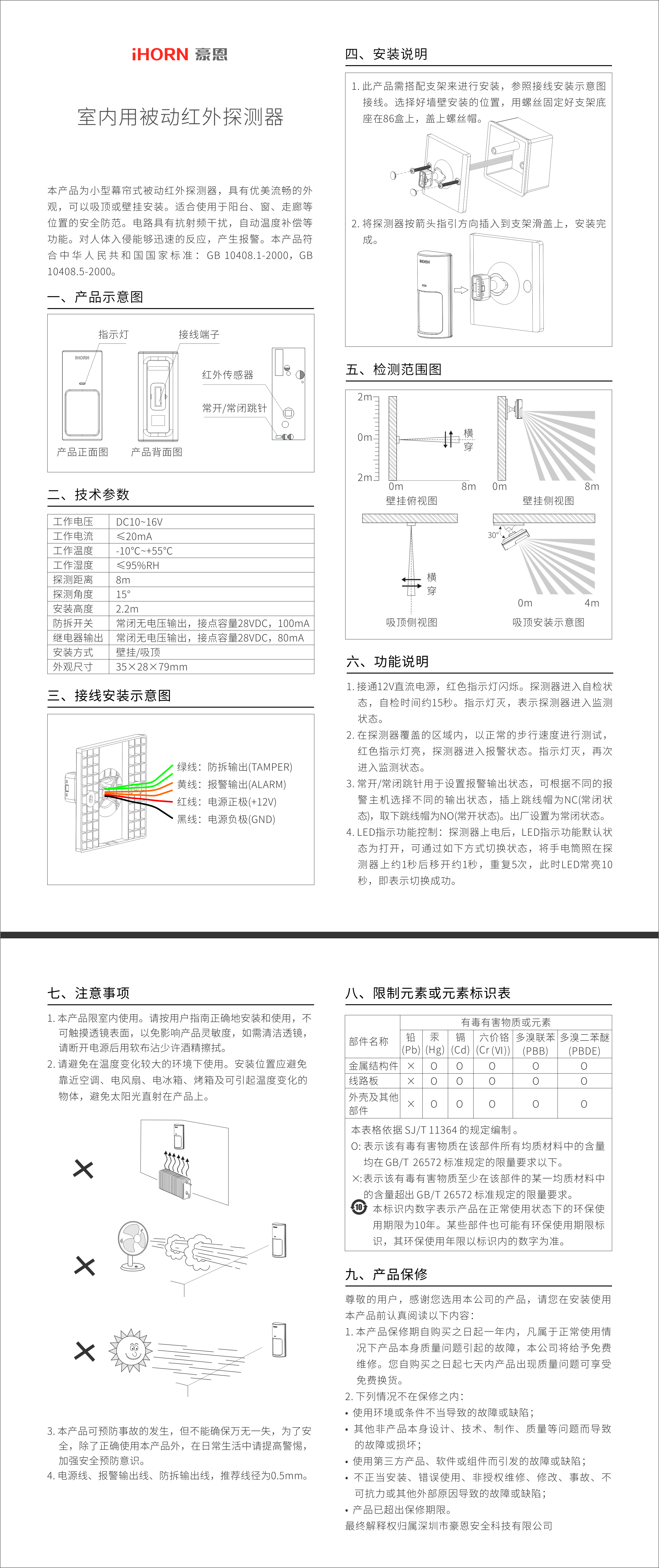 探測距離8m(壁掛)/4m(吸頂)